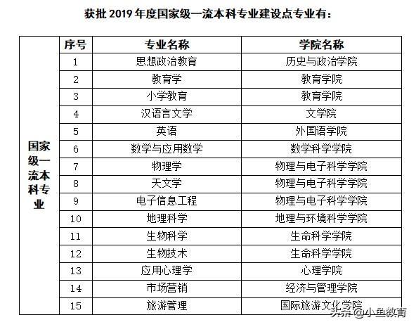 开设:汉语言文学、数学与应用数学、地理科学、生物科学、历史学、思想政治教育、旅游管理等国家特色专业。