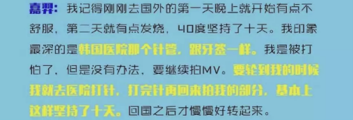 嘉羿高烧40度也不能休息,要打针继续训练。