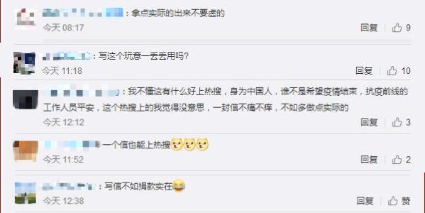 但是也有许多网友在评论里讽刺"一个信也能上热搜",称"写信没用"让她拿出点实际的不要整虚的,更有人直言"写信不如捐款实在",俨然是一副逼捐的样子。