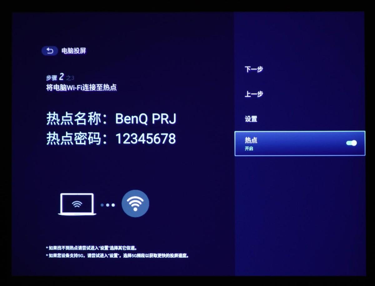 明基E530智能投影仪内置双Wi-Fi模块,无线投屏状态下,可以同时提供热点和Wi-Fi的链接。普通的投影仪开启热点之后就不再能联网络了,只能选择其一,而明基E530则突破限制,用Wi-Fi连接网络,并且开启热点给其他设备使用。可遵循学校的网络限制访问,还能兼顾到无线投屏的便利性,不愧是复合型选手。