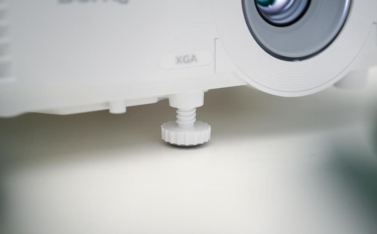 明基E530智能投影仪的调试均为手动调整,灯泡的焦距和虚实,是通过灯泡上方凹槽内的旋钮控制,调整好后固定位置安装,不需要频繁去调整,一次设置就长期有效。