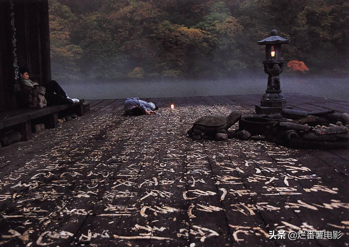 影片最后,曾经的小和尚变作了老和尚, 身边也多出了个小和尚,水塘边,往与嘴里塞石子的小和尚笑的无忧无虑。齿轮转动,重复再重复,一遍一遍。生命是繁盛的, 而化繁为简是人生追求的最高方式, 佛法教育人要收敛五官向外的反应,反向体验内心,那些枝枝蔓蔓随之附丽,串起一幅奇特的景观。这部电影同样也是繁盛的。繁盛如四季。
