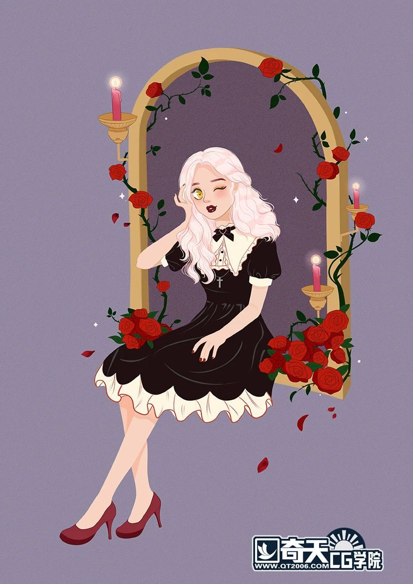 更多精彩插画教程、绘画素材可全网搜索:奇天CG插画!