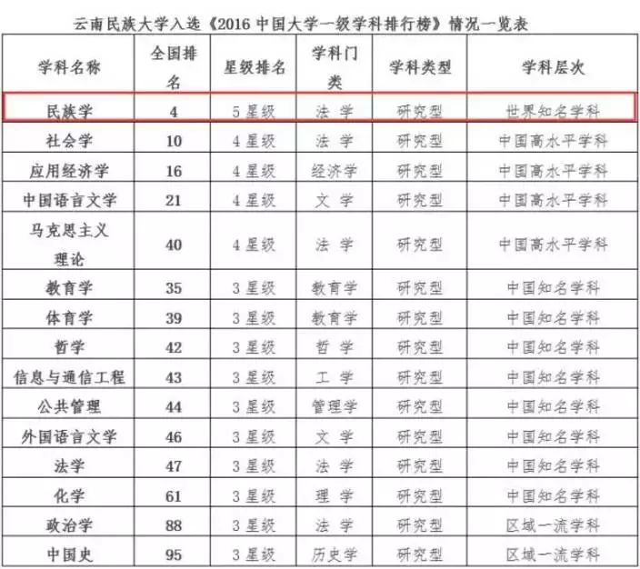 自设立以来,先后被确定为“云南省省级重点建设学科”“云南省省校合作共建重点学科”“少数民族社会发展研究中心”“云南跨境民族宗教社会问题社科研究基地”等7个重点学科、重点专业和研究基地、研究中心。在2016年《中国大学一级学科排行榜》上是云南民族大学位列第二的专业。