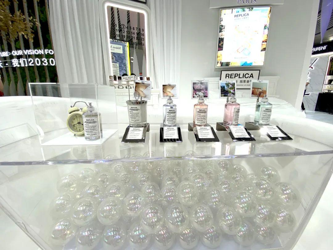 科蒂集团展出七大标志性美妆品牌:Gucci美妆、Burberry美妆、Chloé、Tiffany、Miu Miu、Marc Jacobs、Calvin Klein品牌香水、Lancaster护肤。