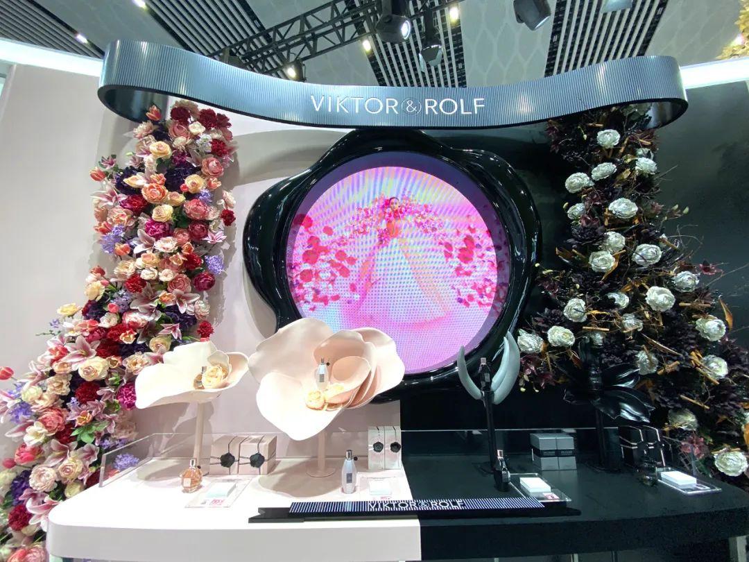 消博会6号馆的双循环买全球展区,云集了中国中免、海旅免税、深圳免税集团等免税零售企业,香化产品为大头,参展企业多以香水墙呈现。