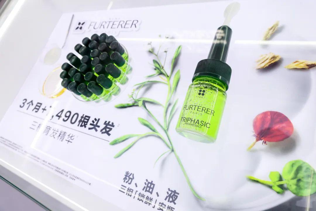 馥绿德雅在消博会上首次线下展出品牌重磅核心产品:有着“防脱生发专研植物精粹成分”、“粉油液分离安瓶设计”,以及“人体工学定制按摩头”三大黑科技于一身的三相固发育发精华液。
