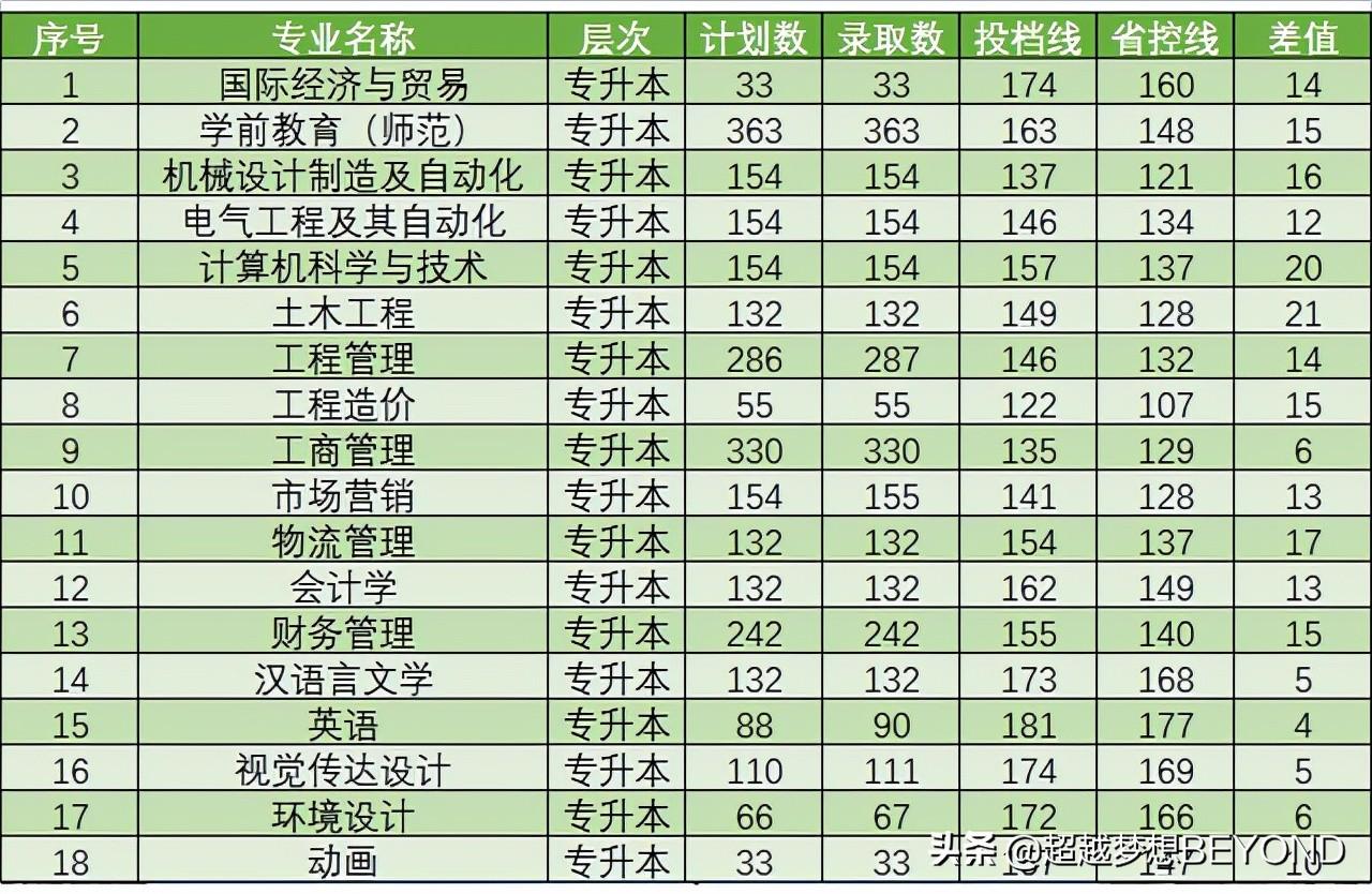 2021年,郑州商学院在河南省招生的“专升本”专业有18个,其中包括1个师范类专业(学前教育),录取人数在200人以上的专业有学前教育(师范)、工商管理、工程管理、财务管理等专业。
