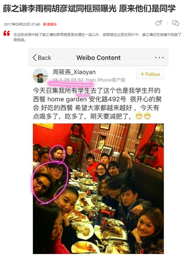 薛之谦、李雨桐、胡彦斌三人还是同学。