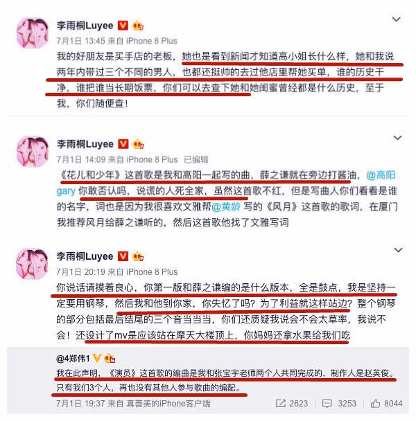 然后就是李雨桐噩梦开始。(下图,薛之谦与高磊鑫复婚后,李雨桐的爆料)