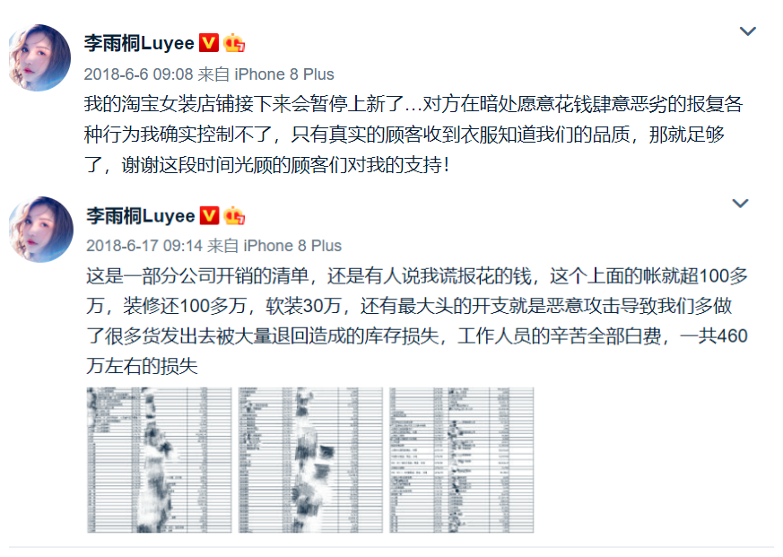 随着事件持续发酵,越来越多的人开始攻击李雨桐,然后还有她的网店。