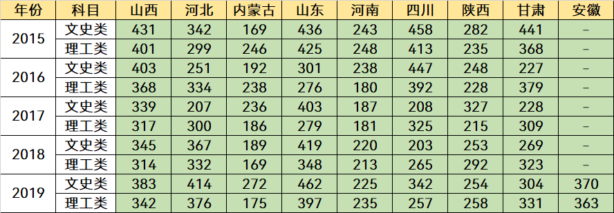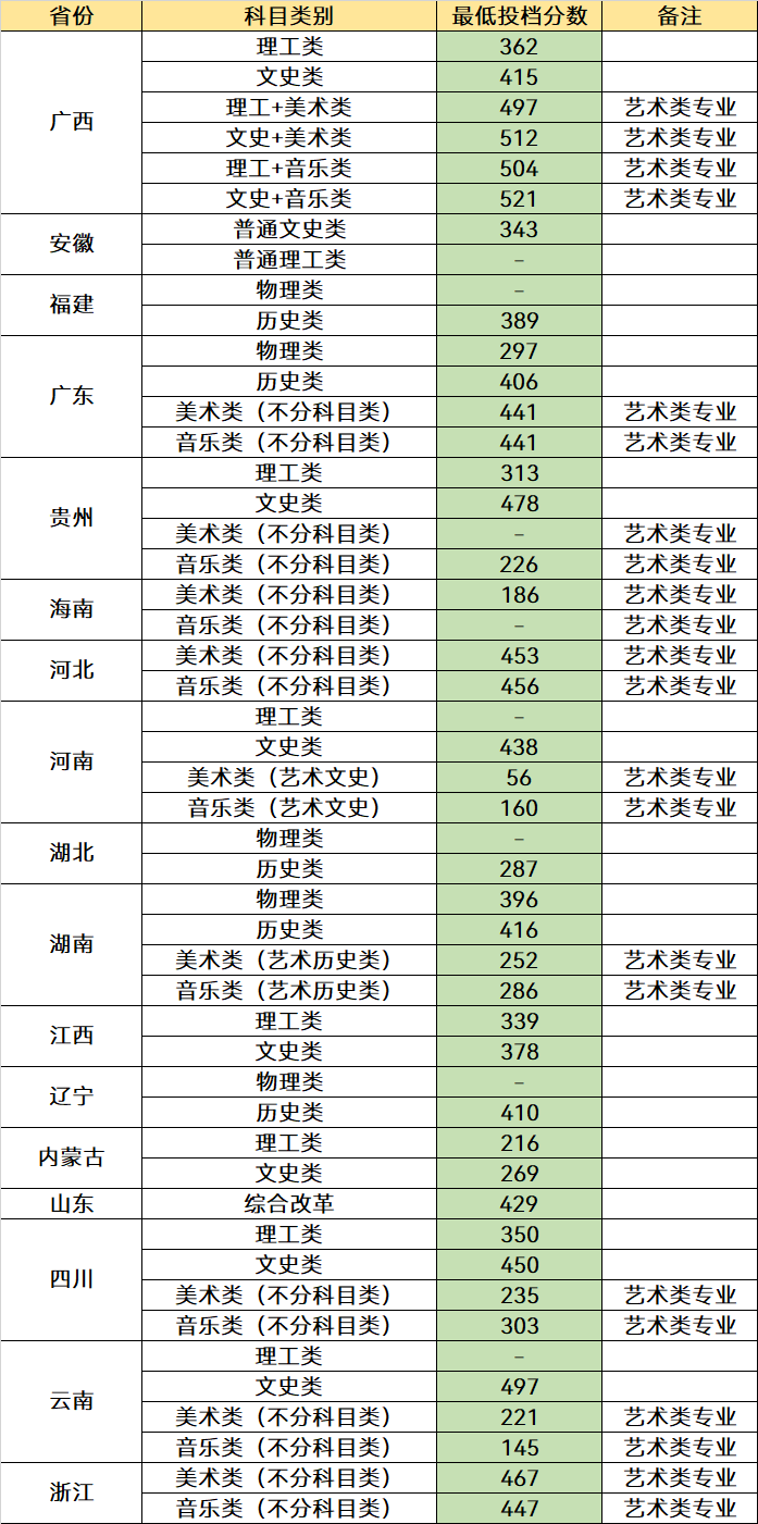 可见这所大学的录取分数也是在三百多分的样子,但部分地方有四百多分的,感兴趣的考生可以留意一下。