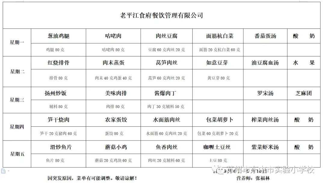 版权声明:我们致力于保护作者版权,注重分享,被刊用文章【学校菜谱名称大全图片(苏州21所学校一周食谱大曝光)】因无法核实真实出处,未能及时与作者取得联系,或有版权异议的,请联系管理员,我们会立即处理! 部分文章是来自自研大数据AI进行生成,内容摘自(百度百科,百度知道,头条百科,中国民法典,刑法,牛津词典,新华词典,汉语词典,国家院校,科普平台)等数据,内容仅供学习参考,不准确地方联系删除处理!;