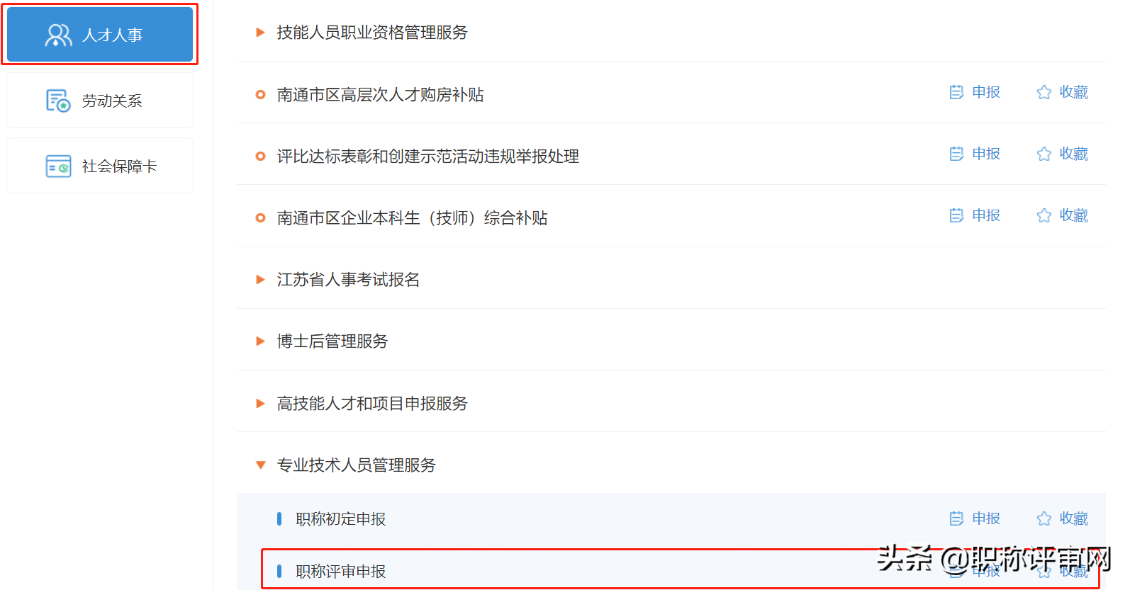 1. 登录江苏人才服务云平台,进入专业技术人员管理服务栏,选择职称评审申报