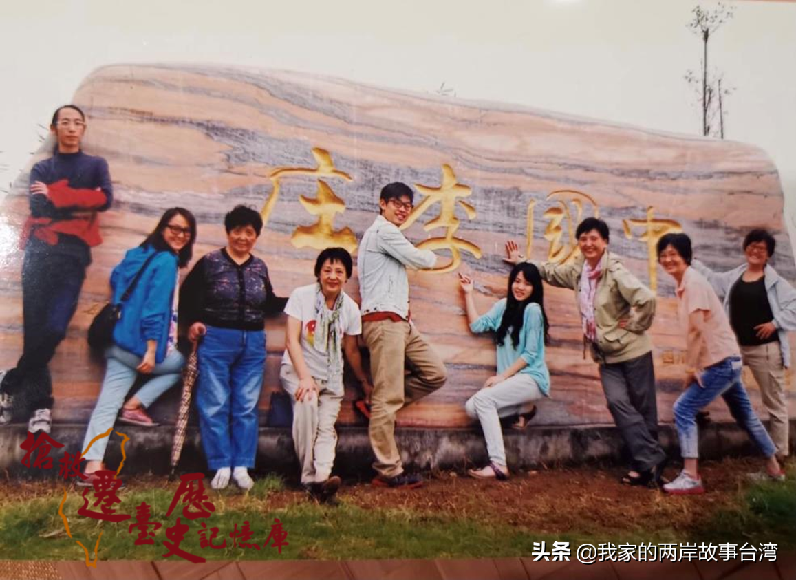 陈嘉德(左3)在三代返乡之旅中共九人合影留念,特别造访四川南溪李庄,即同济大学在抗战时期的所在地。