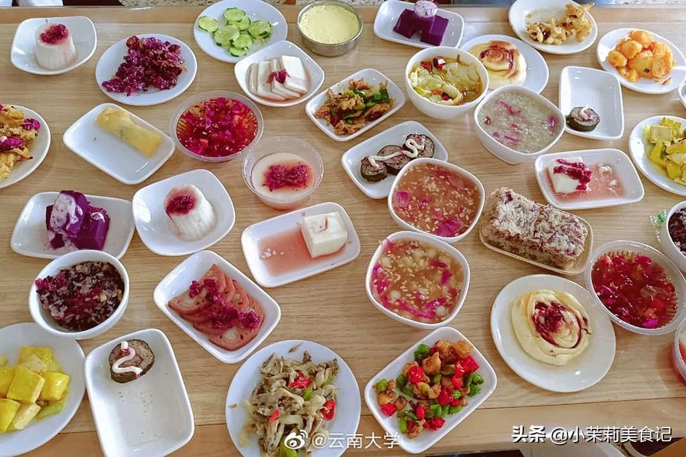 当然这已经不是云南大学食堂第一次对传统美食的创新,早在4月份开始,云南大学推出的“玫瑰宴”就引起广大网友的关注和深深地羡慕。在云南呈贡校区,30余亩可食用玫瑰花进入盛开的季节,这不仅成为了校园内的一道浪漫的风景,引得广大师生前来打卡,在吃货的眼里更是一道道舌尖上的美味。云南大学食堂就地取材,自行研发了20多道玫瑰料理,包括玫瑰糯米藕,玫瑰奶冻,玫瑰寿司等,每一道“玫瑰料理”都色香味俱全,经过料理后的玫瑰花瓣,不仅挑起人们舌尖上的欲望,更跻身成了餐桌上的一道视觉盛宴,每次上架不到10分钟,就被抢购一空。