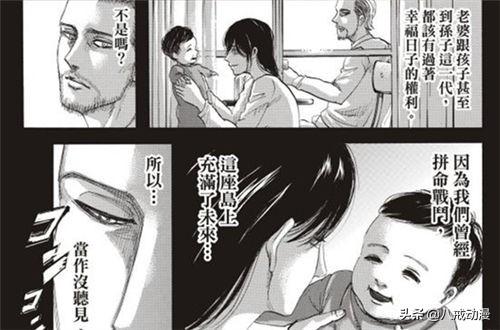 127话开头让做梦结婚生子,梦中妻子的头发就是黑色,现在来看这也是一个伏笔,暗示他以后会和三笠结婚。那早先放出的“最后一格漫画”中,抱着小孩的那个人就是让,小孩就是让和三笠生的,谏山创所谓的“最后一格漫画”,可能说的是加页的最后一格。