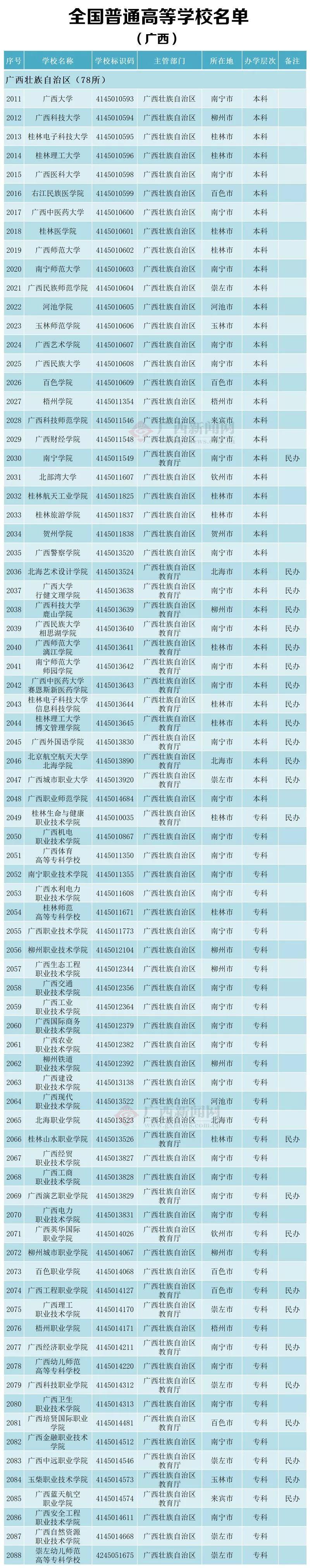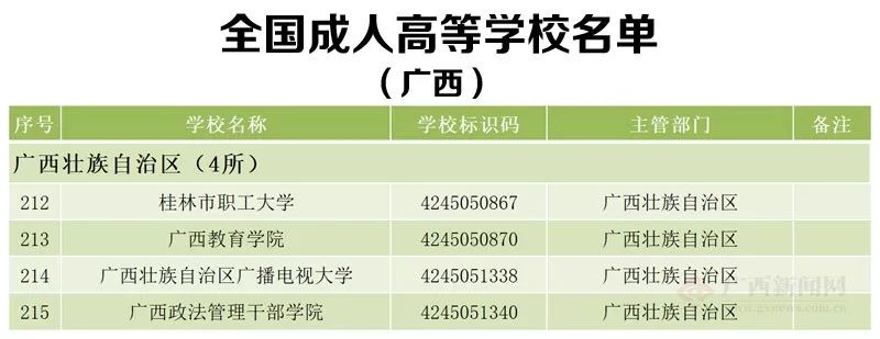 小编梳理发现,与2017年教育部发布的《全国高等学校名单》相比,广西新增4所高校,分别为——