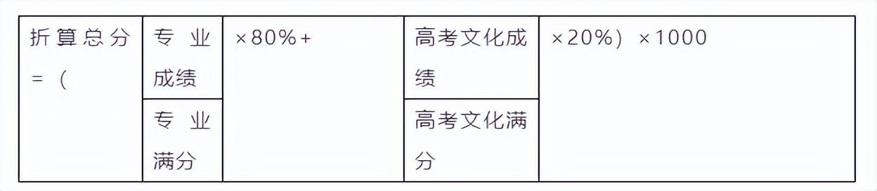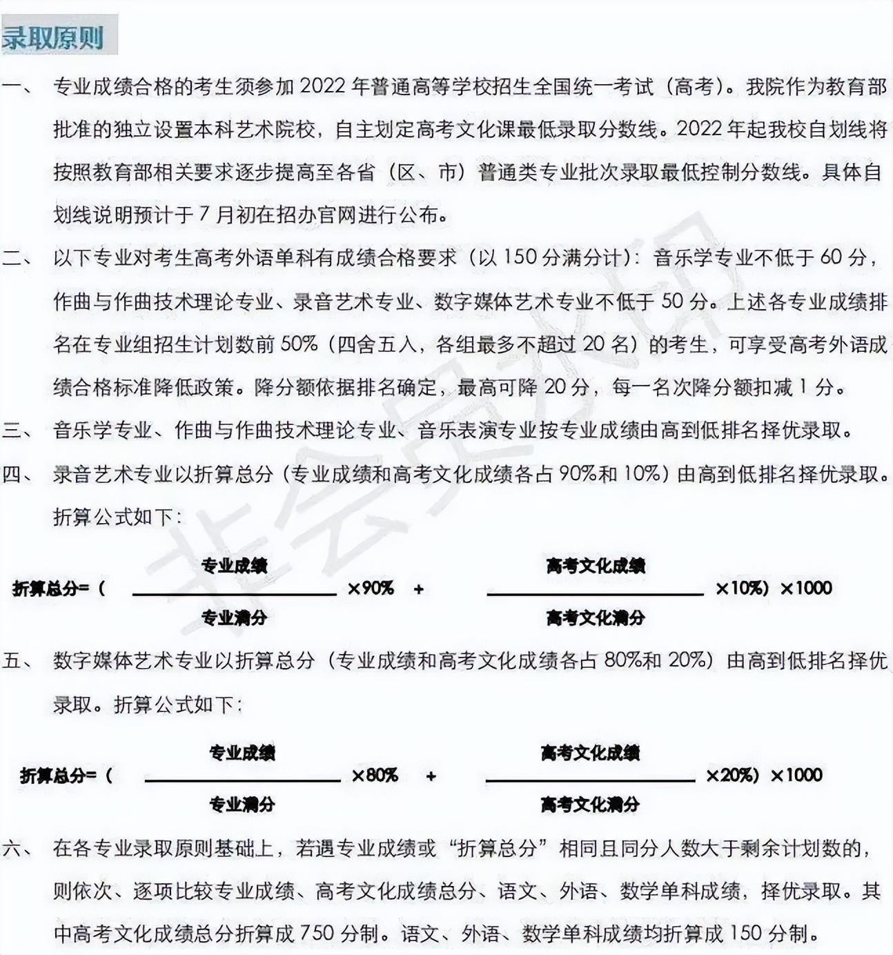4.录音艺术专业以折算总分(专业成绩和高考文化成绩各占90%和10%)由高到低排名择优录取。折算公式如下: