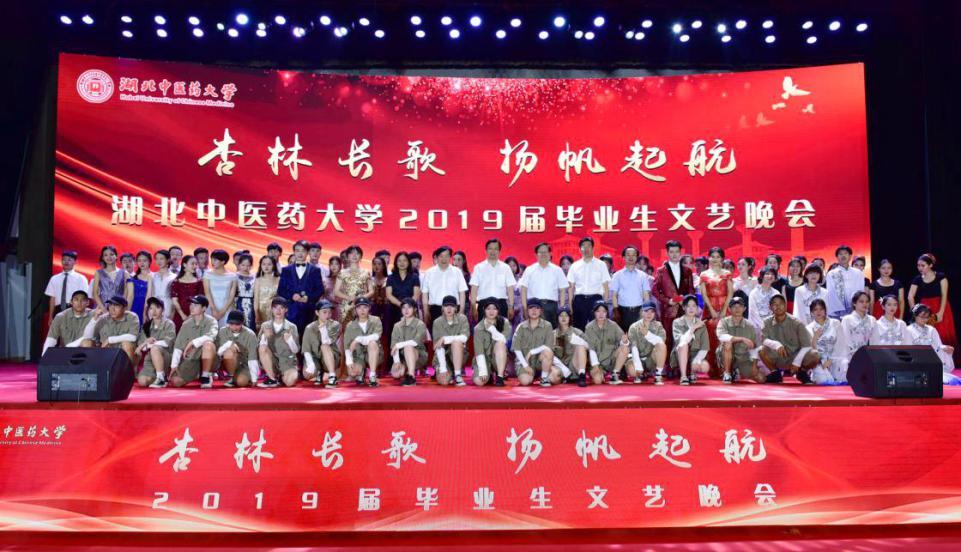 毕业典礼结束后,数千名毕业生在校园里合影留恋,表达对母校的眷恋和不舍之情。当晚,学校在体育馆隆重举办了"杏林长歌 扬帆起航"2019届毕业生文艺晚会。晚会在合唱《我和我的祖国》《湖北中医药大学校歌》中拉开帷幕,节目类型涵盖了歌曲、舞蹈、情景诗朗诵、民乐合奏等艺术形式,充分展现了中医学子的爱国爱校情怀,激起了毕业生的大学回忆与对未来的希冀,也蕴含着学校对远行学子的深切期盼与祝福。