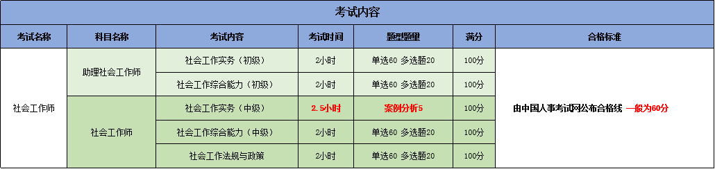 ⑨成绩查询官网查询:中国人事考试网http://www.cpta.com.cn官网成绩单笔试满分为100分,60分为合格。全国社会工作师职业水平资格考试成绩查询一般在考后2-3个月查询。 ⑩合格标准社会工作师考试合格标准已公布:2021年度助理社会工作师、社会工作师职业水平考试各科目的合格标准均为60分(各科目试卷满分均为100分)三区三州社会工作师考试合格标准按照中国人事考试网发布的《三区三州等地区社会工作者职业资格考试合格标准》,得知“三区三州”等深度贫困地区社会工作者职业资格考试合格标准如下: