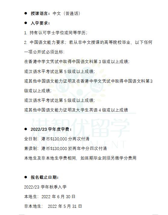 不知不觉时间马上就要到4月了,2022年转眼已过了1/4,这段时间里你学习了什么?又收获了什么呢? 目前正值offer发放季,很多的同学已经收到梦校offer准备开启下一段学习之旅,也有很多同学与理想失之交臂,每次就差那么一点点,也许是均分差了一点点,也许是雅思/托福差了一点点,也许是运气差了一点点...... 所以今天小羊为了失落的大家带来了一个好消息,香港珠海学院硕士22fall新增3个专业,入学门槛低,中文授课,无需雅思申请,拿硕士学历又能拿港人身份,对英语能力不太好、想留学进修移民人士来说简直是福音,且所有专业现都还可以申请,申请截止日期统一为5月31日!