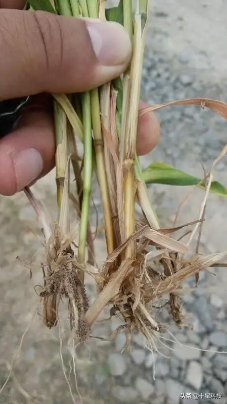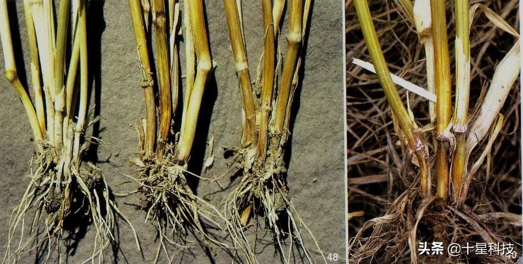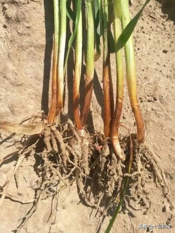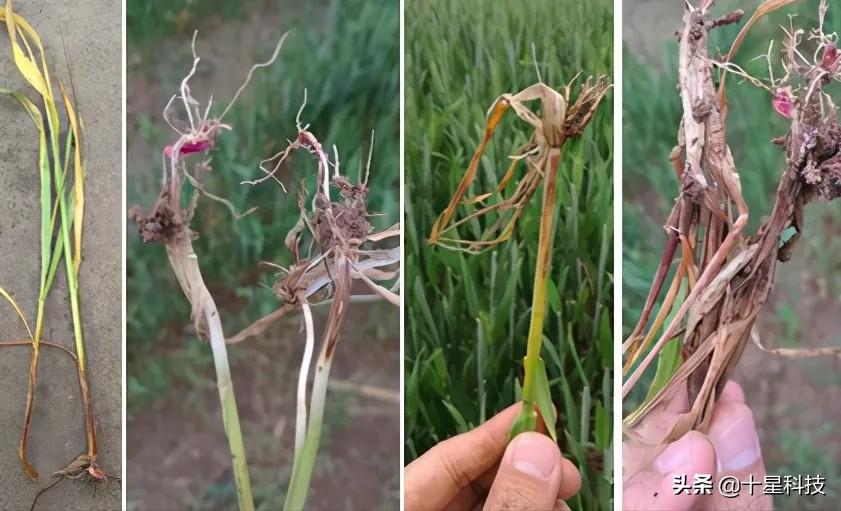 请注意,小麦茎基腐病在苗期基本没有明显发病症状(需要在拔苗后才能看到),但在拔节孕穗期症状会逐渐显现,灌浆期呈现“枯白穗”症状——待症状显现后基本已错过防治适期,造成小麦严重减产。发病田块一般减产20%~30%,严重的减产60%以上甚至绝产。