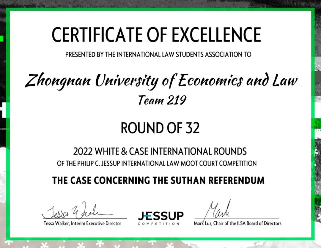 ▲近日,第63届杰赛普国际法模拟法庭竞赛落下帷幕,我校代表队在国际赛初赛与复赛中以优异的发挥从160多支队伍里脱颖而出进入三十二强(中国赛区仅4支队伍晋级),总分位列全球第12名,中国赛区第一名。除团体奖项外,团队中的个人庭辩表现受到法官青睐,我校代表队的两位辩手荣获“世界百强辩手(World Top 100 Individual Oralist)”荣誉。同时,我校代表队荣获最佳申请方书状全球第三名,再次刷新我校在此次国际赛事上的最佳成绩