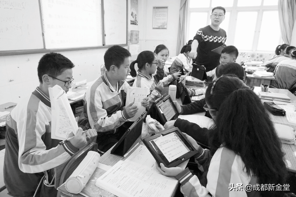 学生人手一台平板,老师讲评的每一笔板书不用抄写就能实时同步;上传英文作文后,根据系统打分提示不断修改,每篇作文都能修改到接近满分……这不是科幻电影里的桥段,而是金堂中学外国语实验学校E课班学生上课的日常。