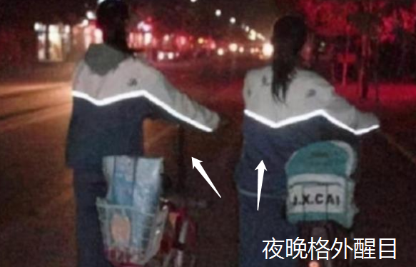 新校服发下来后,学生刚开始还觉得平平无奇,可是一到晚上就发现不对劲儿了。当学生下晚自习时,不仔细看根本看不出学生们的身影,只能看到身上的反光条。