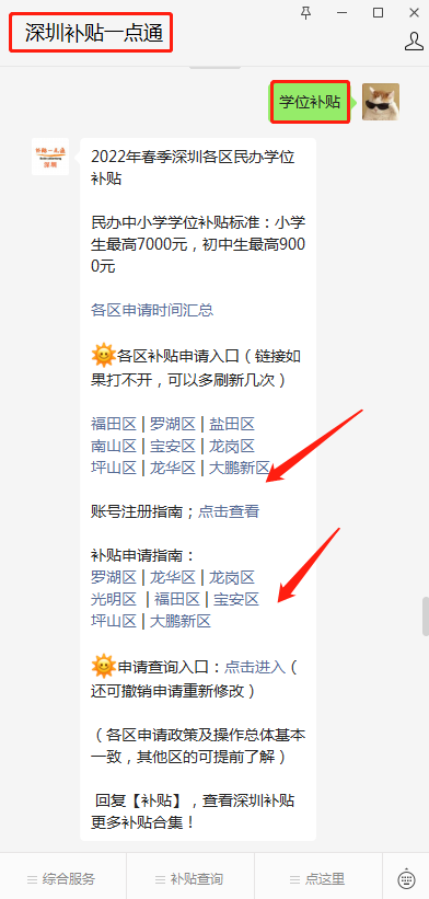 电脑搜索并登录“广东省政务服务网”(网址:http://www.gdzwfw.gov.cn/ ),大家也可以直接在【深圳补贴一点通】后台聊天对话框回复【学位补贴】获取电脑端申请入口,以及每个区详细的申报指引: