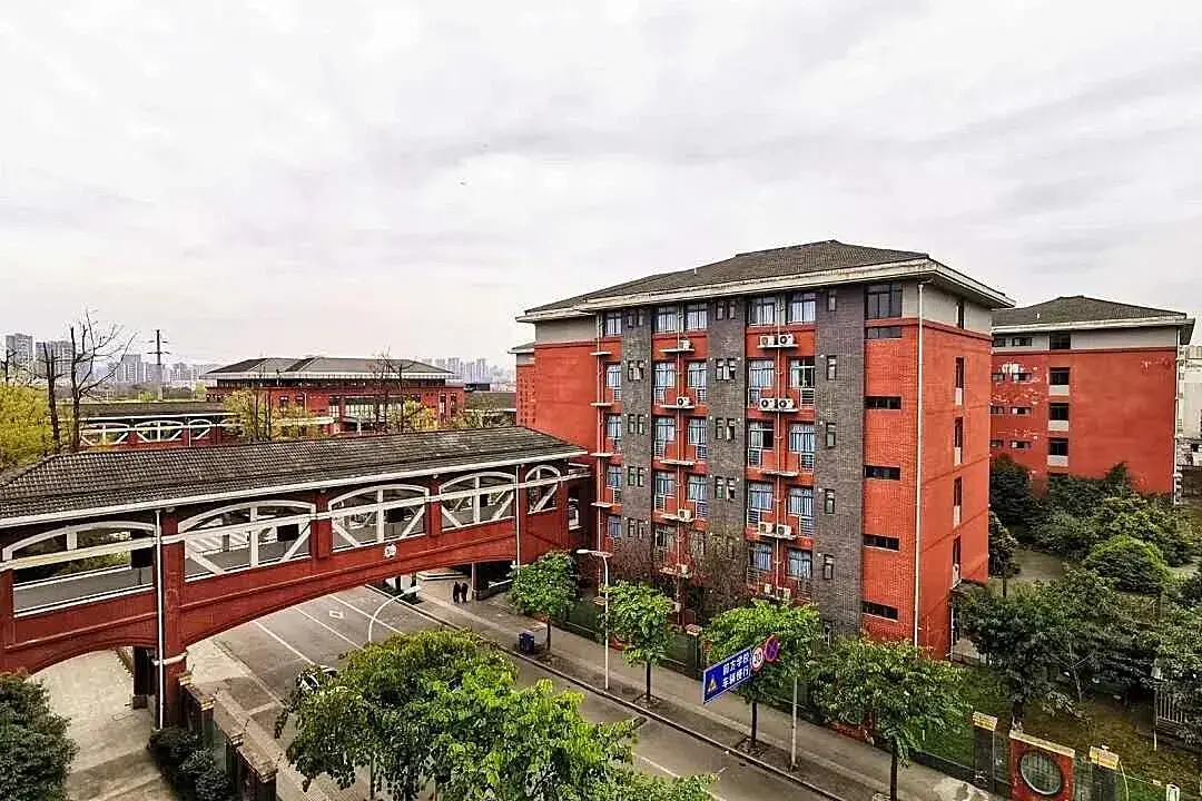 成都市金牛区盛安路1号,一座古朴的过街天桥连接着两栋砖红色的大楼,这便是成都七中万达学校教学区与生活区的分界,也是成都学校圈的“网红桥”,从这里走出一批又一批的学子,走进了世界名校。