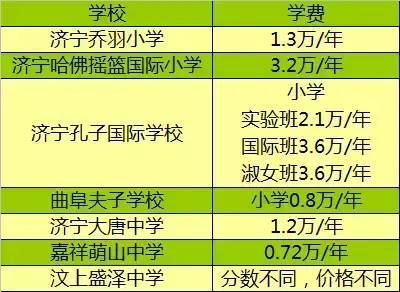 济宁老牌学校,十五年一贯制,学费(小学部,实验班21000/年,国际班36000/年,淑女班36000 /年)