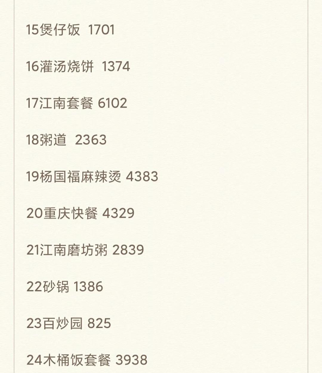 论营业额,有自选餐的地方,自助餐就是营业额的冠军,没有自选餐的地方,其他套餐饭就是冠军,然后才会是麻辣烫。