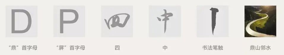 校徽围绕办学理念"以善为魂,大写人生”进行创意,构成元素有:鼎屏拼音首字母"DP”、书法笔触、四中、鼎山邻水。