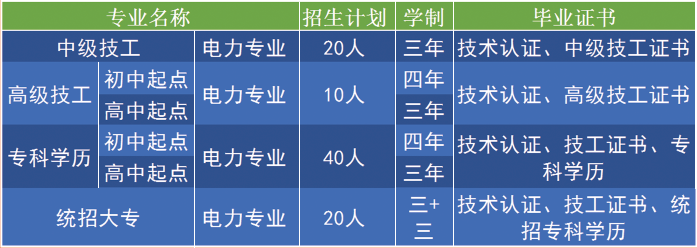 2019春季末电力专业学历班招生计划