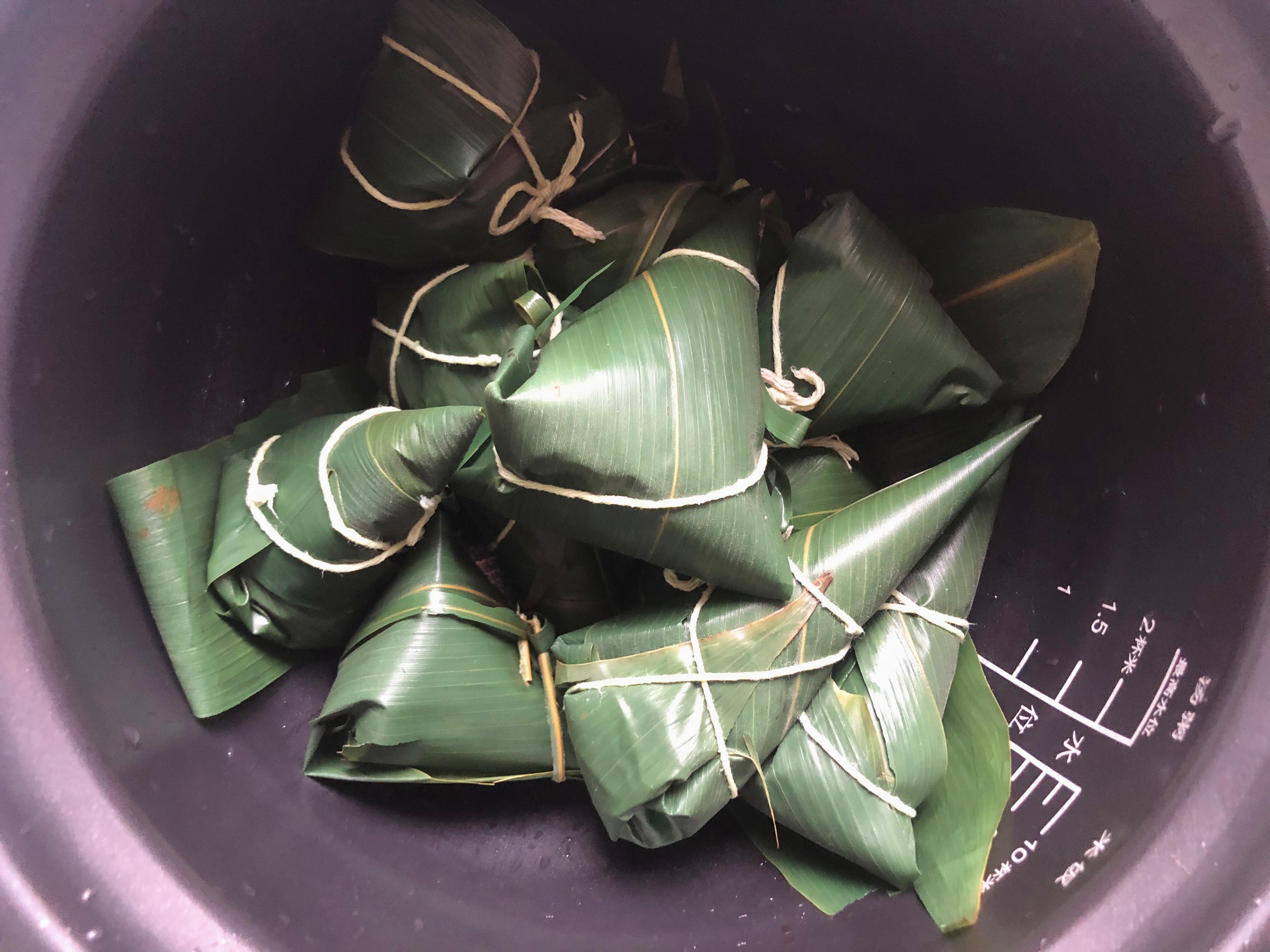 依次包好,就可以放入锅中煮了。我用的是高压锅,加入没过粽子的水量,选择豆蹄筋的档位,等着煮好就可以了。煮好的粽子在群里晒图,妈妈忙问我用的什么米,看起来晶莹剔透的,看着就好吃,她也要包上一锅尝尝。看来她终于不再固守传统包法,要做新的尝试了。