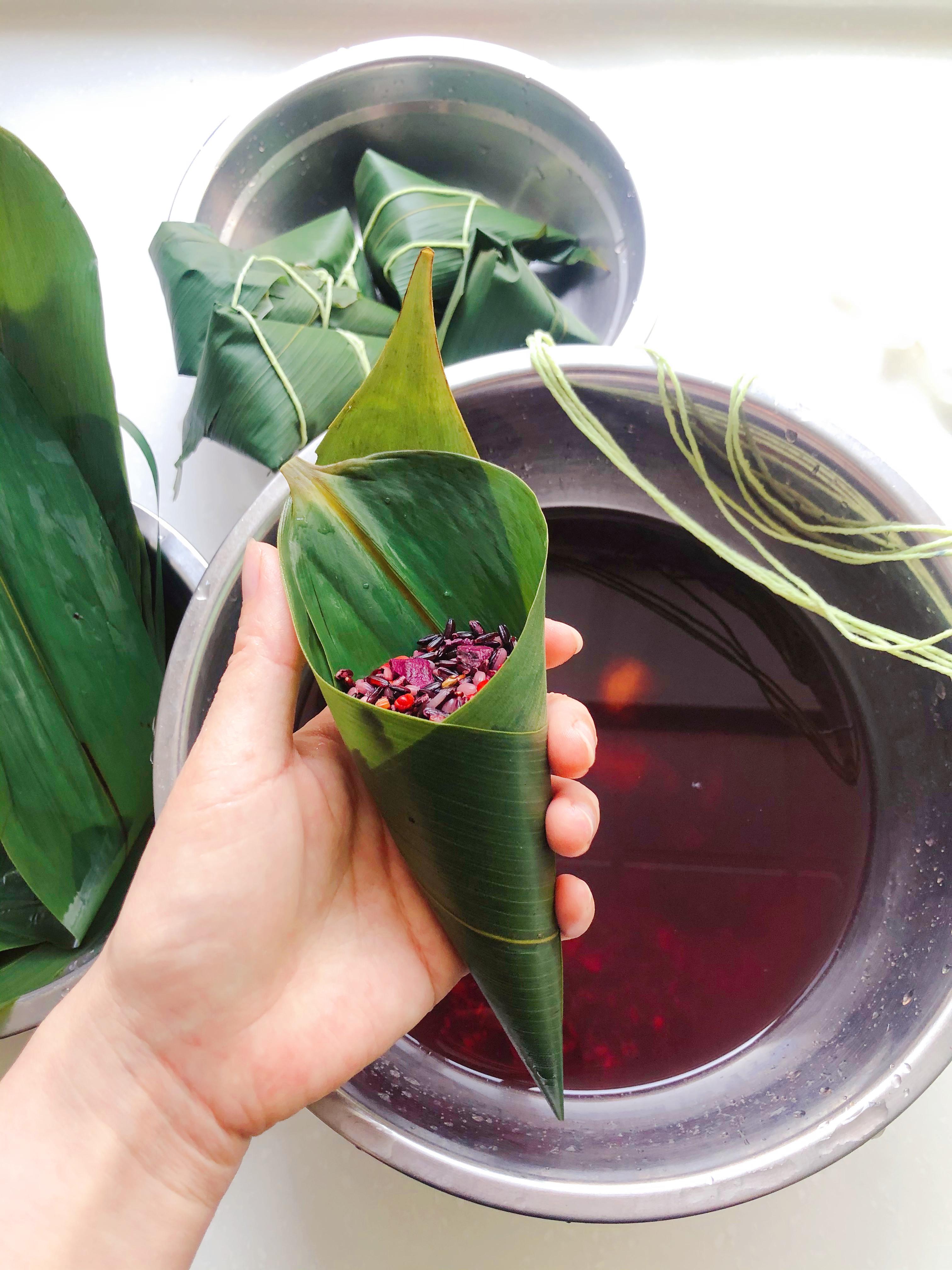 回来自己又包了一锅儿子爱吃的黑米红豆蜜枣粽,包了两种形状,长三角粽和四角粽。因为老公不喜吃甜,方便区分,三角粽放蜜枣,四角粽不放。其实包粽子真的非常简单,只需要三步。第一步,准备粽子米和粽子叶;第二步,包粽子;第三步,煮粽子。是不是超级简单,一起来看看吧!