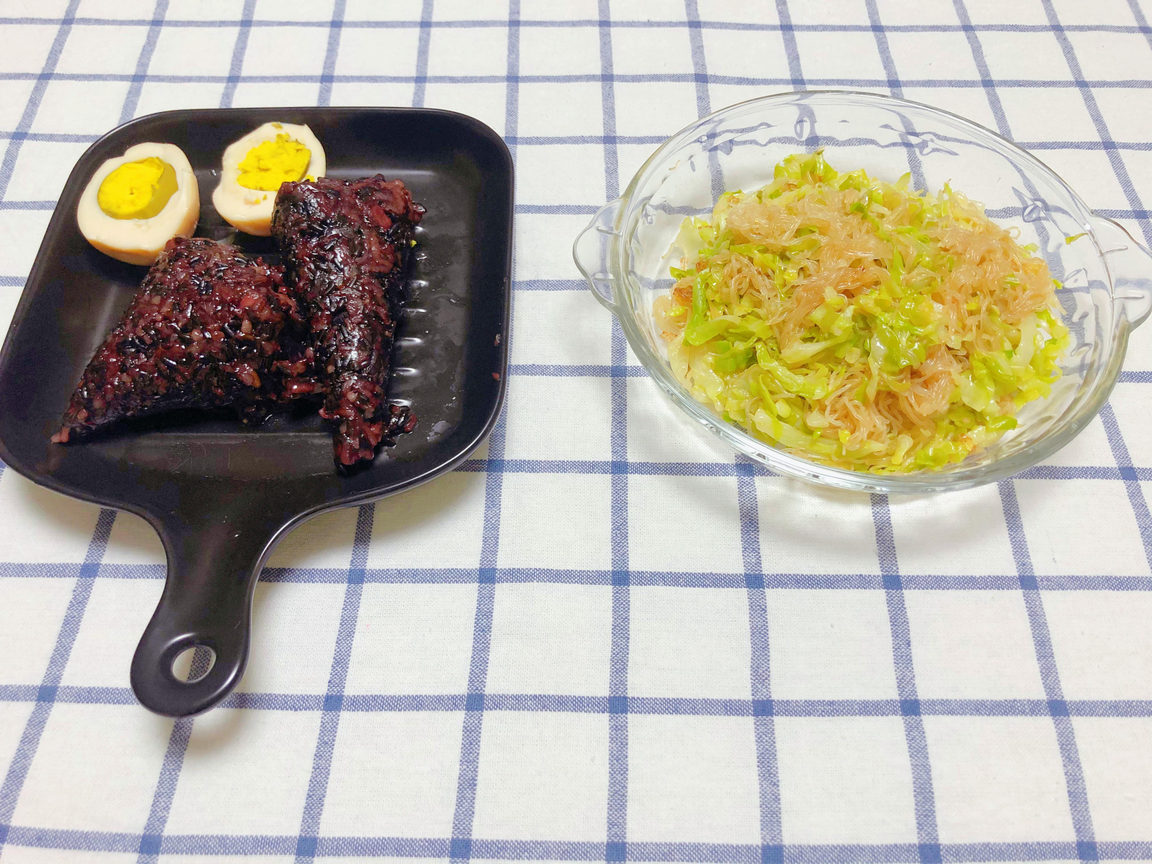 粽子做早餐还是很方便的,再配一点蔬菜,快手早餐你值得拥有。我做了包菜粉丝,搭起来还不错,儿子吃了个精光。值得注意的是:粽子的主料就是糯米,建议不要吃多,尤其是孩子和老人,以及脾胃弱的人群。#我的早餐日记#