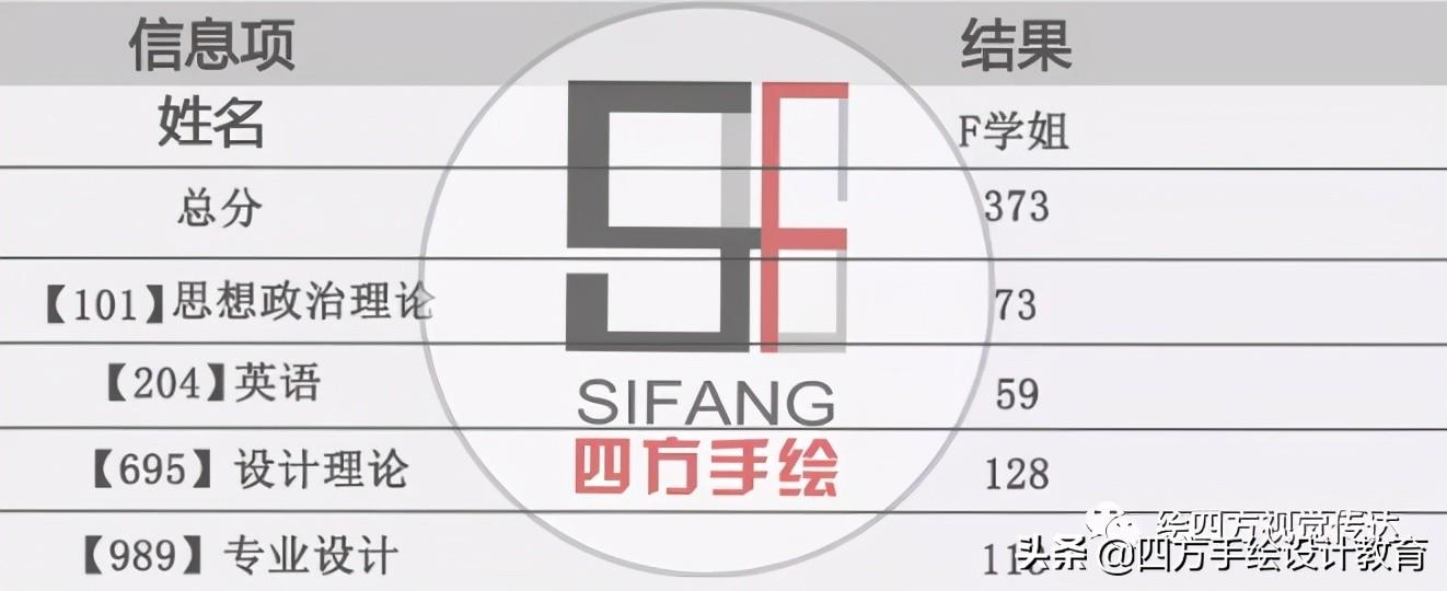大家好,感谢四方手绘的邀请,很开心也很荣幸能够有机会来写这篇经验贴。我是F学姐,今年上岸湖北工业大学视觉传达设计专业硕士研究生,理论128分,手绘113分,英语59分,政治73分,总分373分。