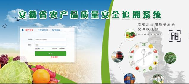 安徽省农产品质量安全监管与追溯平台包含溯源监管、快速检测、农产品销售地等功能模块,旨在为安徽省农产品质量安全建立一套"来源可查询、流向可追踪、信息可查询、责任可追究"的追溯体系与监管平台。
