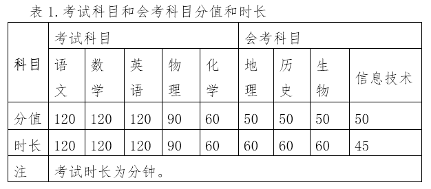 初中学业水平考试设置为考试科目、会考科目和考查科目三类。考试科目为语文(含书写卷面分5分,采用扣分制)、数学、英语、物理、化学。会考科目为历史、地理、生物和信息技术(只限初四重考和往届生参加)。考查科目为地方课程、学校课程、音乐、美术、综合实践活动。