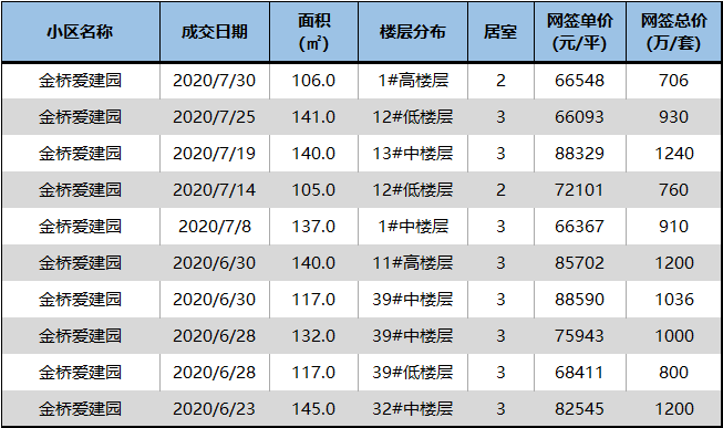 根据数据显示,金桥爱建园目前挂牌房源共11套,挂牌均价约为910881元/平;近90天内共成交10套,以2居室、3居室为主,成交均价约为83228元/平。
