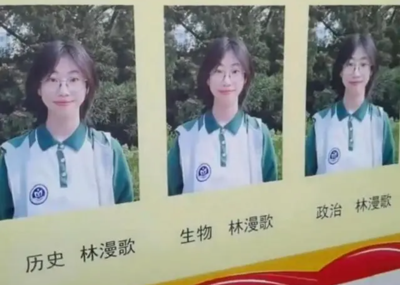六门学科全第一,听起来很有小说女主的意思,而这位女生的颜值和名字也都仿佛小说女主一样,她叫林漫歌,光荣榜上的照片虽然穿着校服没有过多修饰,但是能看出来面庞清秀,就算是素颜都难掩气质,都说腹有诗书气自华,这样的学生不用颜值多惊艳就能让人感到特别的气质。