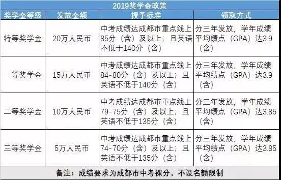 达到石室中学当年普高录取分数线的前3名学生,每位可获得20,000元人民币新生入学奖学金。