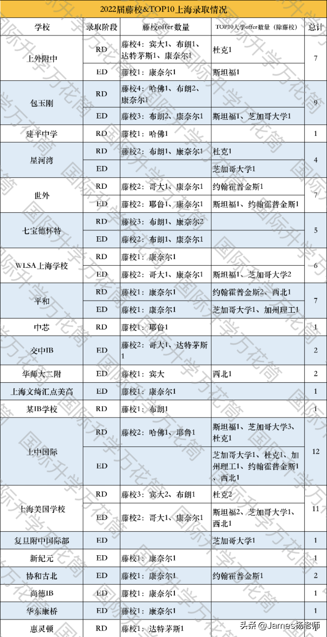 在这张榜单中,顶尖外籍学校发挥稳定。上中国际部、包玉刚均斩获哈佛、耶鲁offer。SAS收获范围较广,囊括宾大、布朗、哥大、康奈尔、芝加哥、西北等众多一线名校。