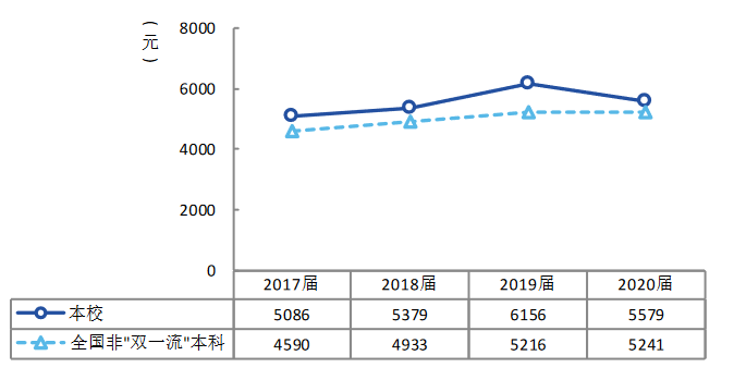 学校2021届本科毕业生的平均月收入与2020年基本持平。据麦可思独立调研显示:大连东软信息学院2020届毕业生的月收入为5579元,较2017届增长了493元,且近四届毕业生的月收入均高于全国非“双一流”本科平均水平,学校毕业生的市场竞争力较强。
