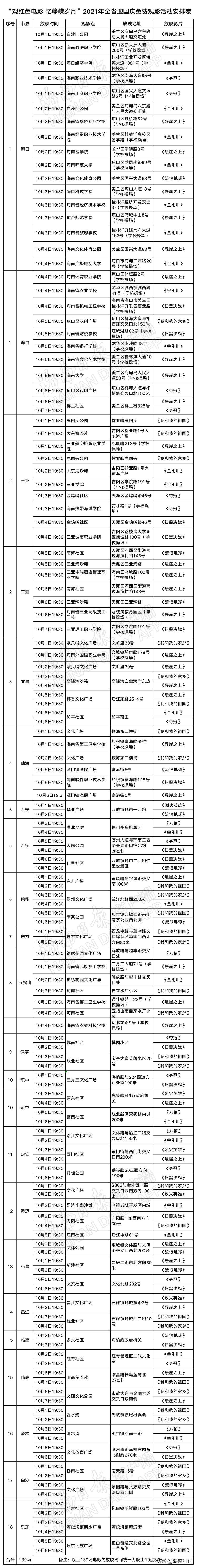 “观红色电影 忆峥嵘岁月”2021年全省迎国庆免费观影活动正在进行中。记者从省委宣传部获悉,为进一步丰富人民群众的精神文化生活,营造欢乐、祥和的节日氛围,10月1日—7日国庆期间,海南将在全省18个市县54个免费观影点和33所高校,为广大人民群众提供139场免费观影服务。