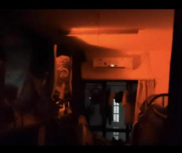 在寝室中,有的室友也会对自己的寝室进行装修,但是还是需要照顾到其他人的心情,毕竟寝室也是一个公共场所,这个学生就买了一盏红色的灯放在寝室,整个寝室看上去也是比较阴森森的。
