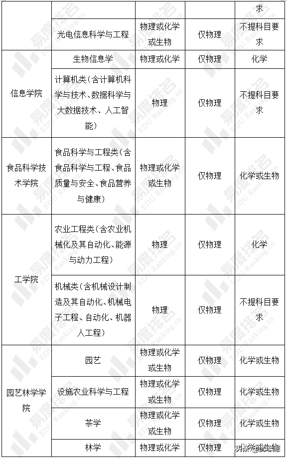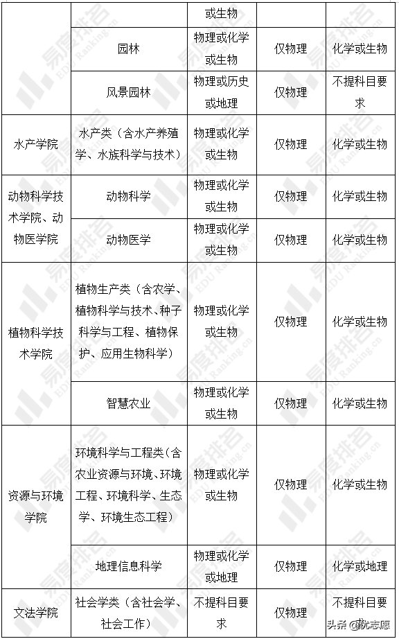 表1. 华中农业大学 2022年高校专项计划招生专业及选考科目要求
